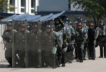 据香港《大公报》报道,香港警察机动部队为纪念成立50周年,13日开放给传媒参观。部队近年引入不少新式的训练,包括针对防暴工作和应付各类游行示威,以及加强人群控制。
