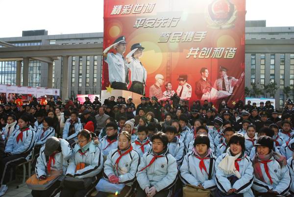 市委学习实践科学发展观第三指导检查组成员、警风警纪监督员、社区居民和学生代表等数百人参加了活动。