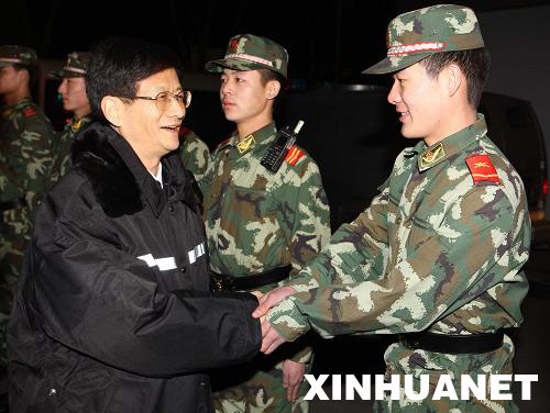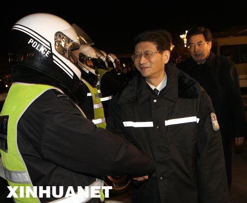 1月25日,国务委员、公安部部长孟建柱在北京慰问除夕夜坚守岗位执勤的公安民警和武警官兵。新华社记者袁满摄