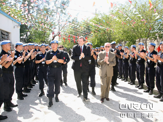 在视察结束时,阿兰·勒罗伊副秘书长在留言中写道:“谨在此对中国第七支驻海地维和警察防暴队表示诚挚的祝福和衷心的感谢,你们充分展示了最严明的纪律和最专业的职守,你们所代表的是联合国价值的最高体现。”