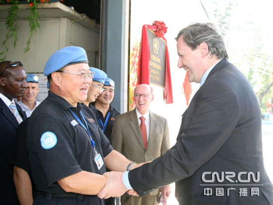 联合国副秘书长阿兰.勒罗伊用标准的汉语向队员们问好“大家新年好!”