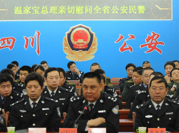 四川省公安厅党委书记、厅长曾省权代表全省公安民警对温家宝总理的亲切慰问和关心表示感谢,他指出,温家宝总理的重要讲话充分肯定了全省公安民警做出的贡献和取得的成绩,体现了温家宝总理对全川公安民警的关怀和殷切希望,各级公安机关一定要把温家宝总理的亲切慰问和关怀传达到每一位民警,把温总理的亲切关怀转化成做好工作的动力、转化成做好工作的信心,以爬坡上行的精神,切实维护好灾区、藏区和全省社会稳定,让总理放心、让省委、省政府放心,让全省人民过好欢乐祥和的新春佳节。