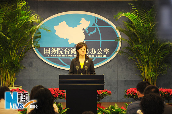 2009年2月11日上午10:00 国务院台湾事务办公室举行例行新闻发布会,新华网进行现场直播。图为国务院台湾事务办公室新闻发言人范丽青主持发布会。新华网 文涛摄