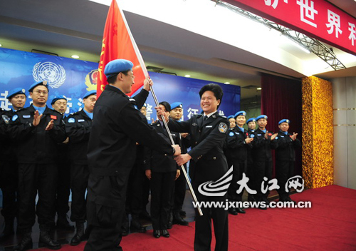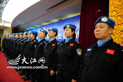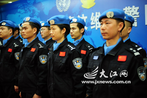 据悉,这支警队组成人员来自江西8个设区市公安局和省公安厅的交警、刑侦、出入境、治安等多个警种,平均年龄35岁,14人为首次出征。经过严格的英语和驾驶技能测试后,他们以优异的成绩通过联合国的甄选,于去年12月31日由公安部正式确定派遣至东帝汶执行维和任务。出征仪式后,这21名江西警察将前往中国维和警察培训中心集结,2月25日,正式开赴联合国东帝汶任务区执行为期一年的维和任务。