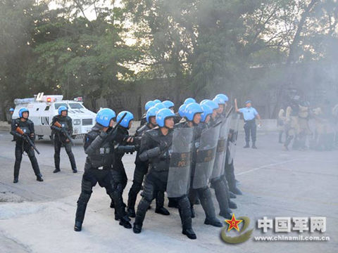 中国维和警察防暴队对骚乱人群实施武力威慑