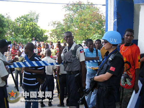 2009年2月7日,海地首都太子港佩森威尔地区两男子因私仇械斗,一名男子当场被刀捅死,另一名男子也被砍成重伤,生命垂危。死者的家属和亲戚朋友纠集众人欲私刑处死伤者,事态逐渐升级,一度引起骚乱,在此区域执勤的中国第七支驻海地维和警察防暴队和友邻维和部队竭力捍卫法律尊严,保护伤者的生命安全。