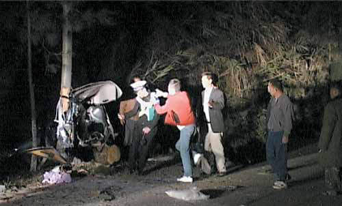 坐在轿车驾驶和副驾驶位置的两人在事故中当场丧生,因严重撞击后车子变形,两个人的尸体被卡在车里,徒手难以移动,大约在零时30分左右,唯一的幸存者被救护车送往附近的东仁医院,接受紧急救治,没有生命危险。因没有合适的切割工具,及时赶到现场的警察和消防员对如何拉出车内死者的尸体也一时束手无策。