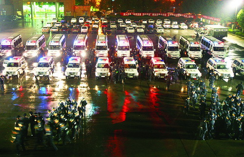 8时许,长沙市公安局巡特警支队大院,随着长沙市公安局副局长李新民一声令下,特警整装上车分赴各执勤点。