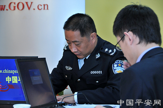 3月9日上午10:30,河南省郑州市副市长、公安局局长黄保卫做客新华网、中国平安网,就郑州公安局开展“全国公安民警大走访”爱民实践活动与网友在线交流。图为黄保卫认真解答网友提问。