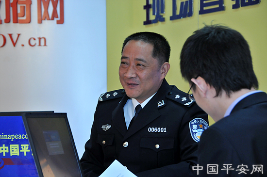 3月9日上午10:30,河南省郑州市副市长、公安局局长黄保卫做客新华网、中国平安网,就郑州公安局开展“全国公安民警大走访”爱民实践活动与网友在线交流。图为黄保卫介绍郑州市公安局开展“公安民警大走访”爱民实践活动。