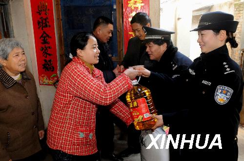 资料图片:2月7日,江西景德镇乐平市公安局城西派出所的民警来到陶家桥居委会走访慰问夫妻双双下岗的特困户俞孙滨(左三)一家。春节前后,江西景德镇乐平市公安局开展“民警大走访、千户大济困”爱民实践活动,对全市1000余户特困、贫困家庭和群众进行走访帮扶。新华社记者宋振平摄