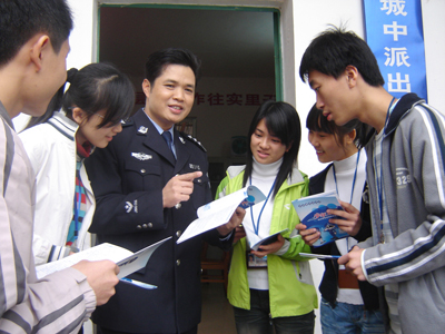 在这堂别开生面的法制课上,同学们纷纷提问:“如果在放学或上街的路上不小心被歹徒围住该怎么办?”“你对岑溪社会治安怎么评价?”“公安机关对我们学生有什么特别保护措施?”……江金局长一一回答了学生提出的问题。当日,民警们还为同学们送上了《少年卫士》、《女性防范手册》等安全防范小册子。