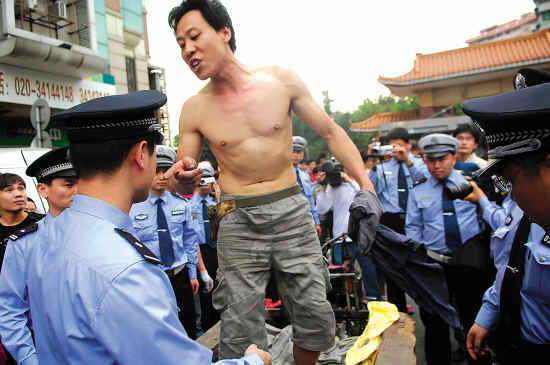 “我是靠这个生活的,车没收了,我以后怎么办?”昨日下午3时许,在中大布匹市场内,被没收了三轮车的年轻车主挡在交警面前不依不饶,在场其他三轮车主也跟着起哄。眼见交警要强行拉走三轮车,这位车主竟顺势躺在了车底下,围观群众起哄声越来越大。