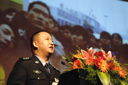 今天(24日)上午,中山大学礼堂内掌声一阵高过一阵,全国第三届“我最喜爱的十大人民警察”先进事迹报告会在这里隆重举行。省市公安民警、边消防现役官兵以及广州市20余所高校近千名师生和社会各界群众代表共近两千人,聆听了英雄们不平凡的战斗经历。