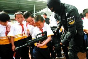 过把特警瘾 来源:新京报 作者:王贵彬 发布时间:2009-05-10 10:22:20 浏览次数: 次 【字体:小 大】 一名学生体验北京特警使用的枪支。昨日上午,在海淀外国语实验学校借读的98名四川青川地震灾区的中小学生,在北京市公安局特警总队观看了擒拿格斗等表演,并体验了特警使用的枪支。 智能标签: 特警 相关内容 【打印正文】
