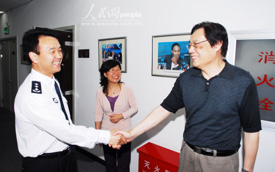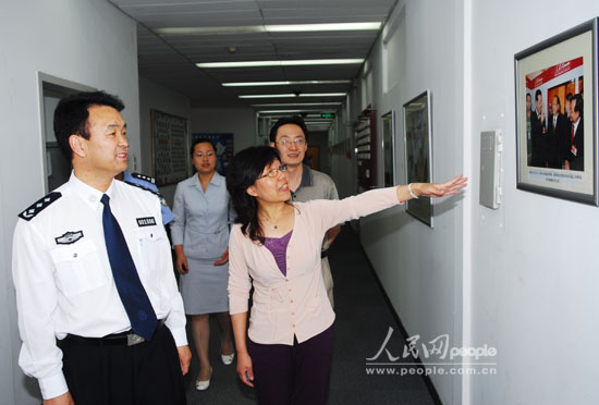 公安部刑侦局局长杜航伟做客本网,人民网总裁助理、要闻部主任唐维红陪同参观。人民网记者 何萌摄 |