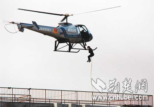 1996年的一天,两歹徒持枪杀人后劫持人质逃进居民区。为保证人质不受伤害,防暴警察在警用直升机上顺着绳梯降到楼顶,从后窗钻进屋内将歹徒擒获。人质安全解救。