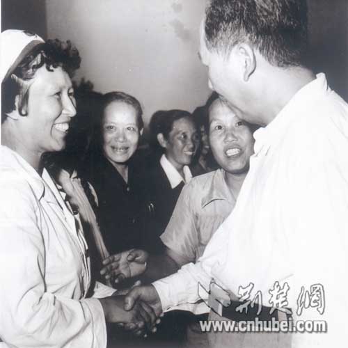 图为:1958年9月4日毛泽东在洪山礼堂接见邱益英