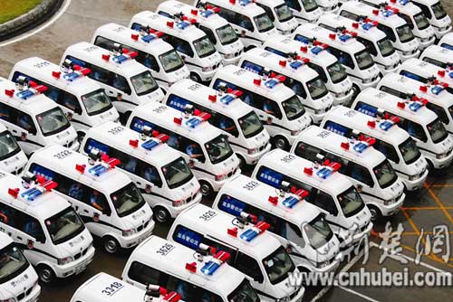 图为:市政府投入700万元向基层发放80台流动警务车