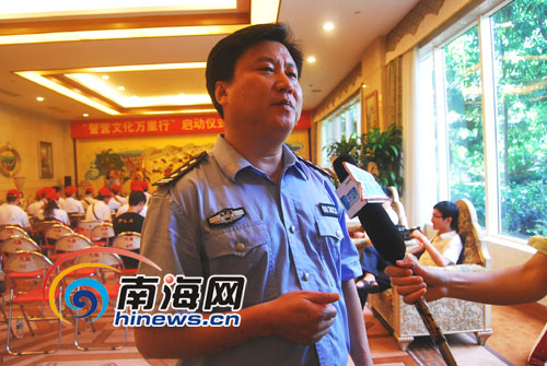 海口警方有关负责人介绍“警营文化万里行”活动。(南海网实习记者 邓宇 摄)