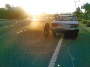 清晨,一辆温州警车,慢悠悠地行驶在温州市府路上“遛狗”。6月29日,这一幕被温州“703804”论坛网友kingjianwu拍下后晒上了网。本报昨天对此事做了报道,新浪、网易、腾讯等多家网络媒体纷纷进行转载,网友评论如潮,称此事为“遛狗门”。
