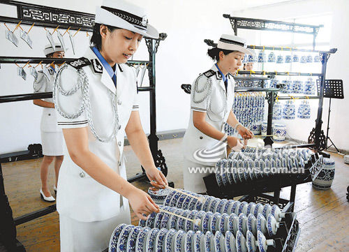 世界上首支警官瓷乐队亮相 由16名女民警组成 来源:江西日报 作者:石卫明 发布时间:2009-07-21 17:32:12 浏览次数: 次 【字体:小 大】 7月17日,世界上首支警官瓷乐队在景德镇亮相。该队由景德镇市公安局16名女民警组成,演奏所用乐器均为青花瓷乐器,包括瓷瓯、瓷编钟、瓷笛、瓷二胡等。近年来,景德镇市公安局通过开展“文化育警”工程,激发民警的职业荣誉感和工作责任感,推进了和谐警营的构建。石卫明 摄 石卫明 摄 石卫明 摄 石卫明 摄 石卫明 摄 石卫明 摄 智能标签: 警官瓷乐队 女民警 相关内容 【打印正文】