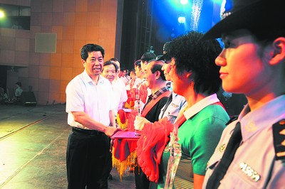 昨晚,李江(上图)、陈润儿(下图)等省市领导给20名获奖人员颁奖。王文虎 小刘军 摄