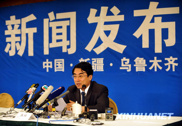 9月4日,乌鲁木齐市委常委、常务副市长张鸿在新闻发布会上回答记者提问。新华社记者 赵戈 摄