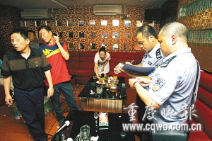 九龙坡区公安分局民警在娱乐场所检查 记者 吴子敬 摄