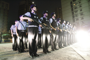 昨晚,公安特警手持钢枪,闪电集结 记者 王雄 摄
