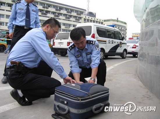 10月3日下午16:38分,西安火车站站前分局治安管理大队接到报案:火车站东广场出租车停靠点处有一个蓝色拉杆箱,放置一个小时多无人认领,情况可疑,有涉爆嫌疑。