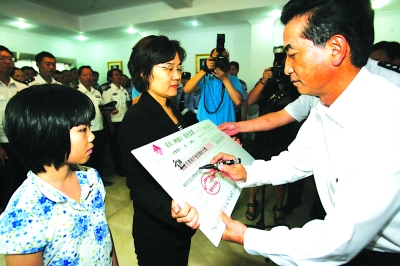 3日上午,“金色盾牌·重庆人民警察英烈救助基金公益信托基金”首次启用,程明的家属获得了100万的救助金。