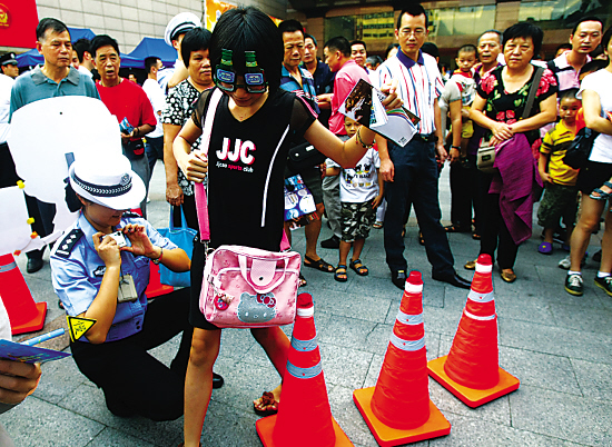 昨日,酒精测试专区吸引了不少有车市民参观。一位市民用警方准备好的北京红星二锅头只是漱了漱口,然后对准酒精测试仪“吹泡泡”,得出的结果吓了周围人一跳:每百毫升血液内含有酒精500毫克,已经超过醉酒标准五倍!