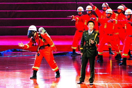 消防战士以情景剧方式讲述英雄胡定华的故事