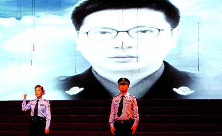 “兄弟,哥想你了,今天我们不谈工作,谈一些高兴的事好吗!就是在我们祖国60岁生日那天,天安门举行了大阅兵……”市公安局讲述的《叫我如何不想你》中,一位和周鑫共事的民警手持鲜花站在舞台中动情地演讲,他动情地说,“兄弟,本来你是可以不倒下的!你当时穿的是便装,没有人知道你是警察,可你听到呼救声,就转身朝歹徒冲了上去;兄弟呀,本来你是可以不倒下的!歹徒先刺中了你的双腿,你只要退缩一下,可能就刺不到你的心脏,面对尖刀,可你为什么就是不松手呢?”当这位民警演讲到这句话时,双眼早已充盈着泪水!
