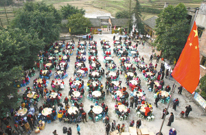 昨日,永川宝峰镇小学,重庆车友会摆70余桌请该校师生吃新年饭,并转交香港警察协会捐赠的物资。记者 李斌 摄