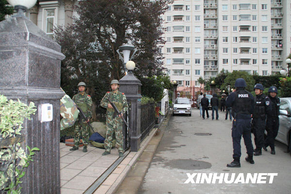 图为警方与武警控制封锁温州市典雅别墅区四周(11月16日摄)。新华社发(温公宣 摄)