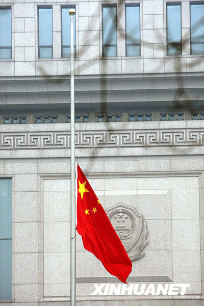 公安部下半旗志哀 悼念八位海地地震遇难中国维和警察 来源:新华网 作者:唐师曾 发布时间:2010-01-19 14:26:35 浏览次数: 次 【字体:小 大】 1月19日,根据国旗法相关规定,为悼念八位海地地震遇难中国维和警察,公安部下半旗志哀。新华社记者 陈建力 摄 1月19日,根据国旗法相关规定,为悼念八位海地地震遇难中国维和警察,公安部下半旗志哀。 新华社记者唐师曾摄 1月19日,根据国旗法相关规定,为悼念八位海地地震遇难中国维和警察,公安部下半旗志哀。 智能标签: 公安部 下半旗志哀 相关内容 【打印正文】