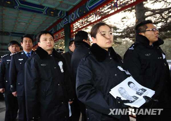 1月20日,向海地地震遇难中国维和警察遗体送别仪式在北京八宝山革命公墓礼堂举行。新华社记者谢环驰摄