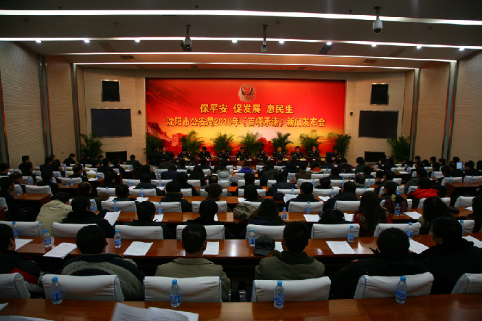 1月31日下午1时30许,沈阳市公安局2010年百项承诺新闻发布会在沈阳市公安局举行。发布会邀请了人大代表、政协委员、警风警纪监督员以及社区干部和群众代表参加。