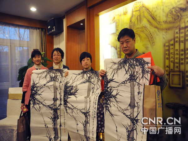 著名书画家于新志赠给三位英烈家属的“墨竹”画作 童琼摄
