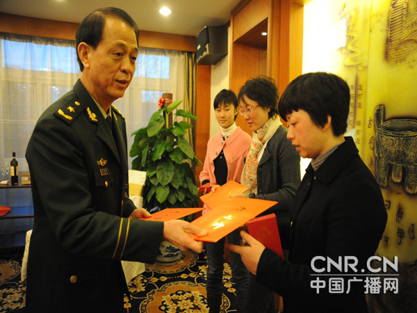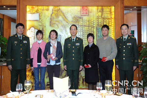 中广网北京2月12日消息 (赵成信)2月12日晚,公安部边防局傅宏裕政委、周书奎副局长邀请来京参加中央电视台春节联欢晚会的三位维和英烈家属到局机关做客,共进晚餐并欢度新春佳节。