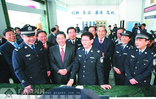 在开展各项信息化平台建设的同时,广西公安厅着力打造功能齐全、协调有序、运转高效的扁平化指挥体系,以适应信息化快速反应的需求。目前,我区基本形成了五级视频指挥调度格局。这也得到了孟建柱的赞许。他指出,按照党中央、国务院的指示精神,目前,公安部正在推进深化公安信息化建设、执法规范化建设、和谐警民关系建设“三项建设”,力抓社会矛盾化解、社会管理创新、公正廉洁执法三项重点工作,希望广西公安厅在自治区党委、政府的领导下,从广西的特点出发,探索出具有时代特色、中国特色、广西特色的公安工作发展新路子。