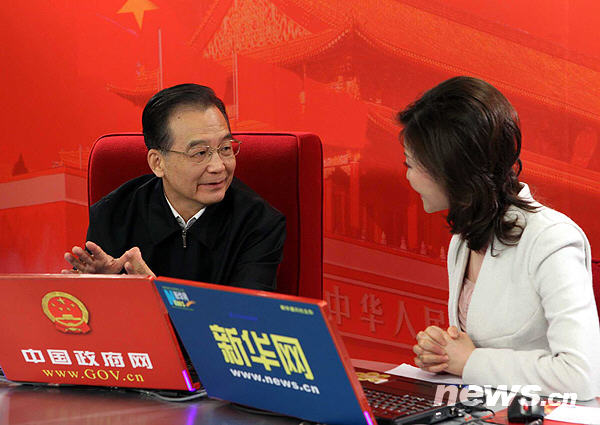 2月27日下午3时,中共中央政治局常委、国务院总理温家宝接受中国政府网、新华网联合专访,与广大网友在线交流。新华社记者马占成摄