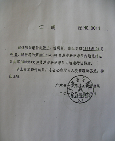 通行证换发证明:港澳居民因在内地办理相关业务需要,可分别向香港、澳门中国旅行社申请办理通行证换发证明(式样见附件2、3)。该证明由广东省公安厅出入境管理局统一出具,证明新通行证根据原通行证换发。