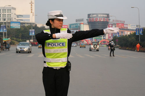 每天早上8点前,警花们就要在车辆和行人高峰到来前上岗,开始一天的工作
