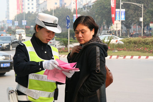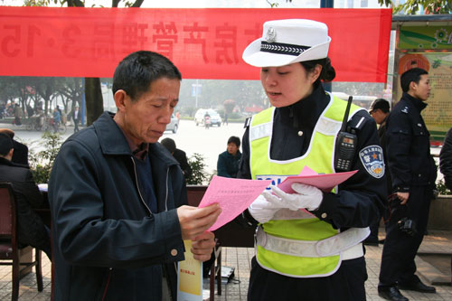 街头开展交通安全知识宣传
