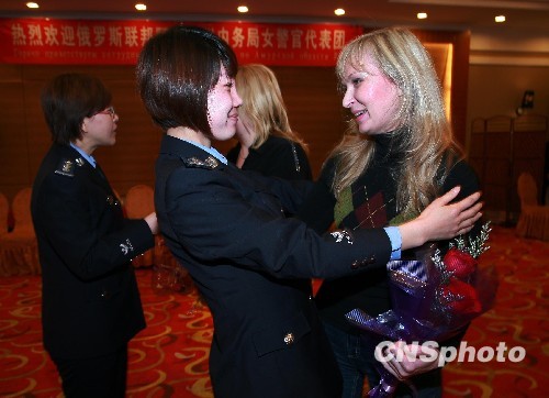 3月19日,应黑河市公安局邀请,以格罗莫夫副局长为团长的俄阿州内务局女警官代表团一行34人来黑河市公安局进行了回访。市局党委委员、副政委卢坤江、政治部主任杨光等热情接待了俄阿州内务局女警官代表团。在欢迎会上,卢坤江副政委代表董树成副市长致欢迎辞,对来访的俄罗斯女警官表示热烈欢迎和节日的祝贺,并送上了鲜花和礼物。他指出,近年来,俄方在打击和侦破刑事案件、维护中国公民在俄罗斯的合法权益、加强两国警方之间警务、文化交流等方面,给予了我方极大的支持和协助。同时,双方大力加强双边联系和友好往来,积极开展形式多样、内容丰富的联谊活动,极大地拓宽了双边合作、交流渠道和领域。格罗莫夫副局长致词,表示日后将进一步加强双边警务交流与合作,并通过互访活动密切交往、增进两岸警方的了解和友谊。