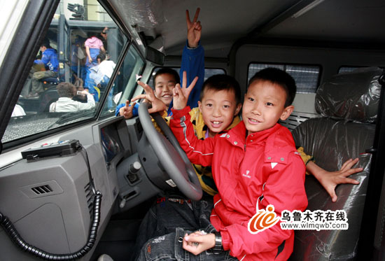 展示的特种车辆中,防弹运兵车很受参观者青睐,一群参观的小学生兴奋地在车里爬上爬下。