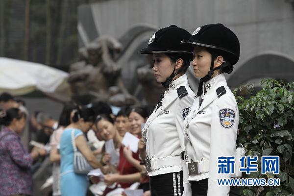 2010年6月17日 重庆女子交巡警队伍正式上岗执勤 6月17日,女子交巡警队员在学校门口站岗。当日,重庆市交巡警女子特勤支队正式上岗执勤,共设立5个早晚高峰手势指挥岗、5个“护校岗”和8个巡逻纠违小组。 新华社记者 陈诚 摄